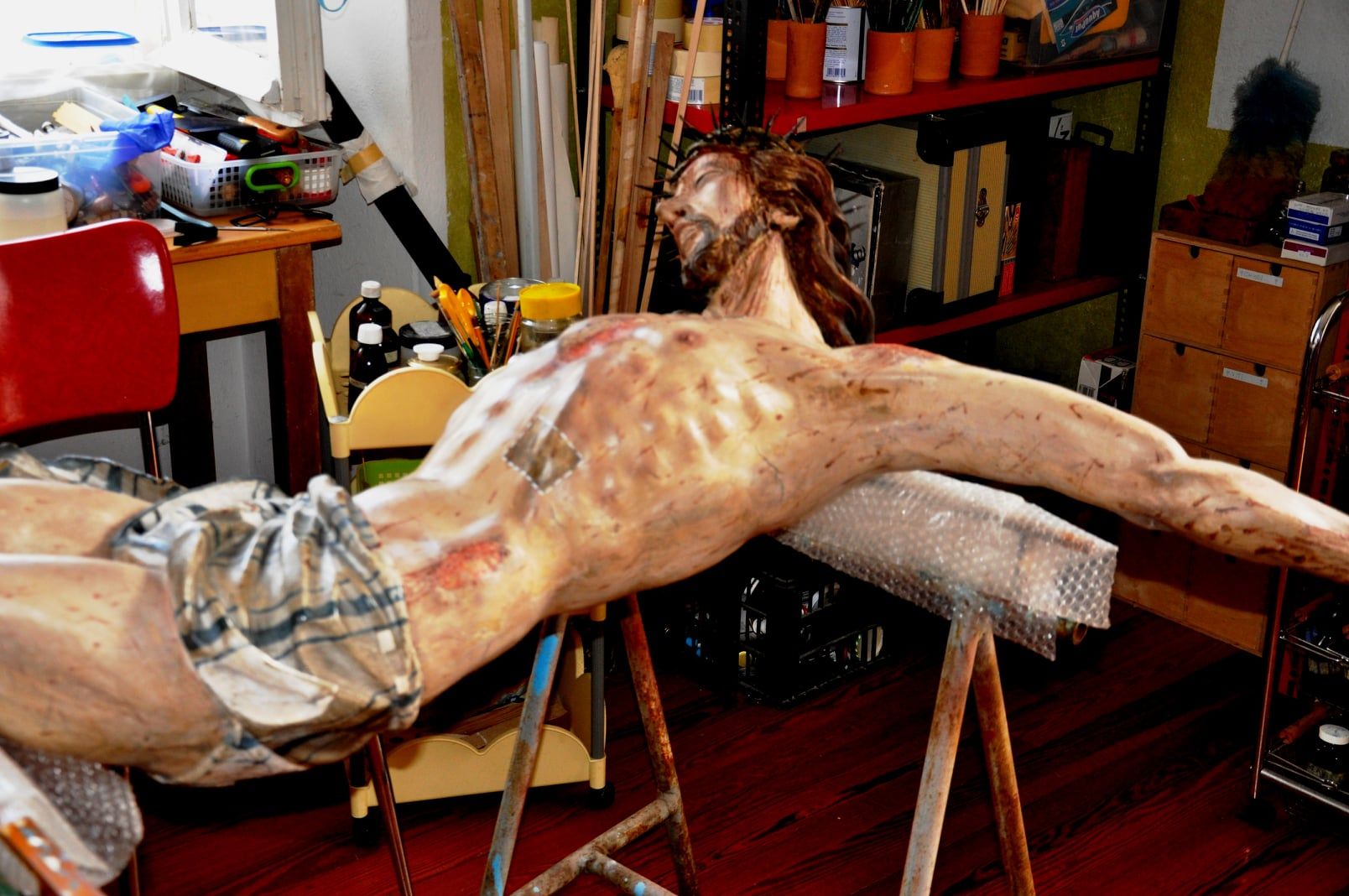 Foto 3: il crocifisso durante il restauro