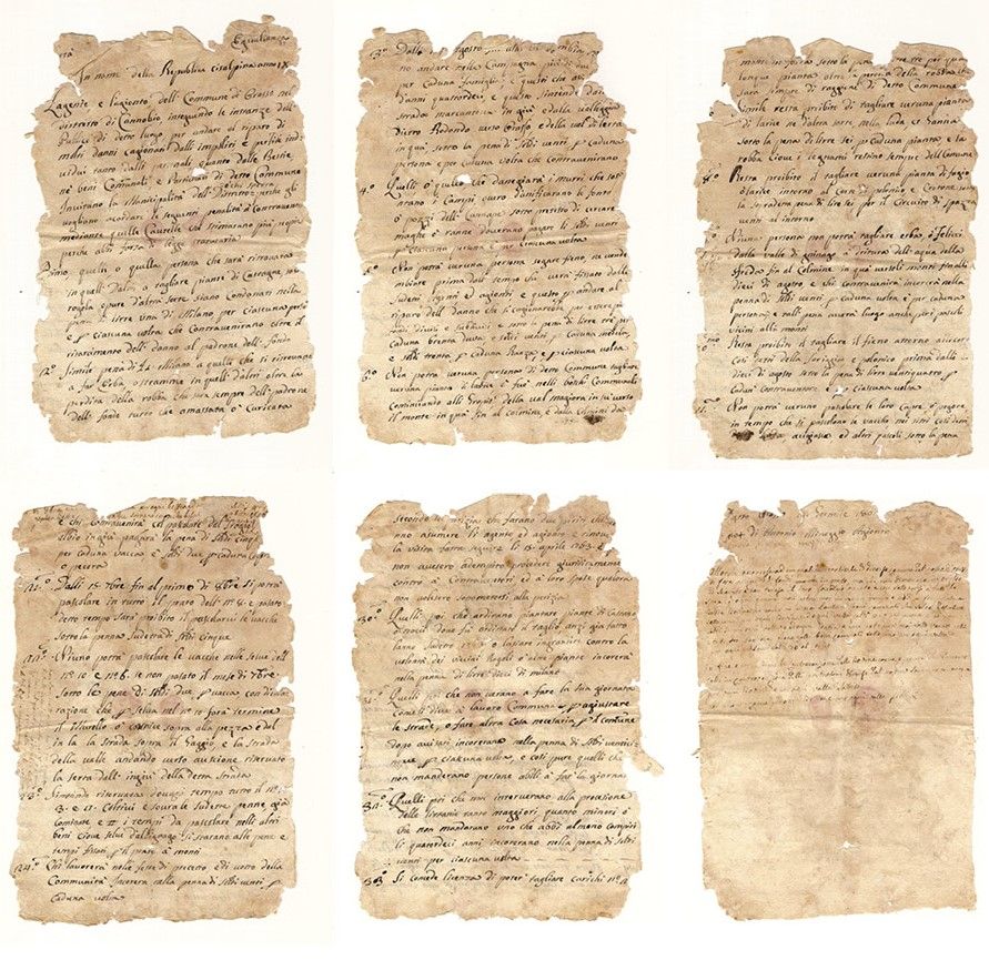 10.° Resta proibito tagliare il fieno attorno alle corti cosiddette della Torriggia e Polonico (oggi più nota come alpe Pluni) prima del dieci di agosto sotto pena di lire 24 per ciascun contravventore e per ciascuna volta
